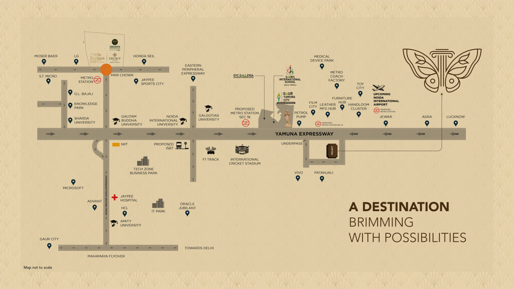 - 10 minutes from the Noida- Yamuna Expressway Expressway.
